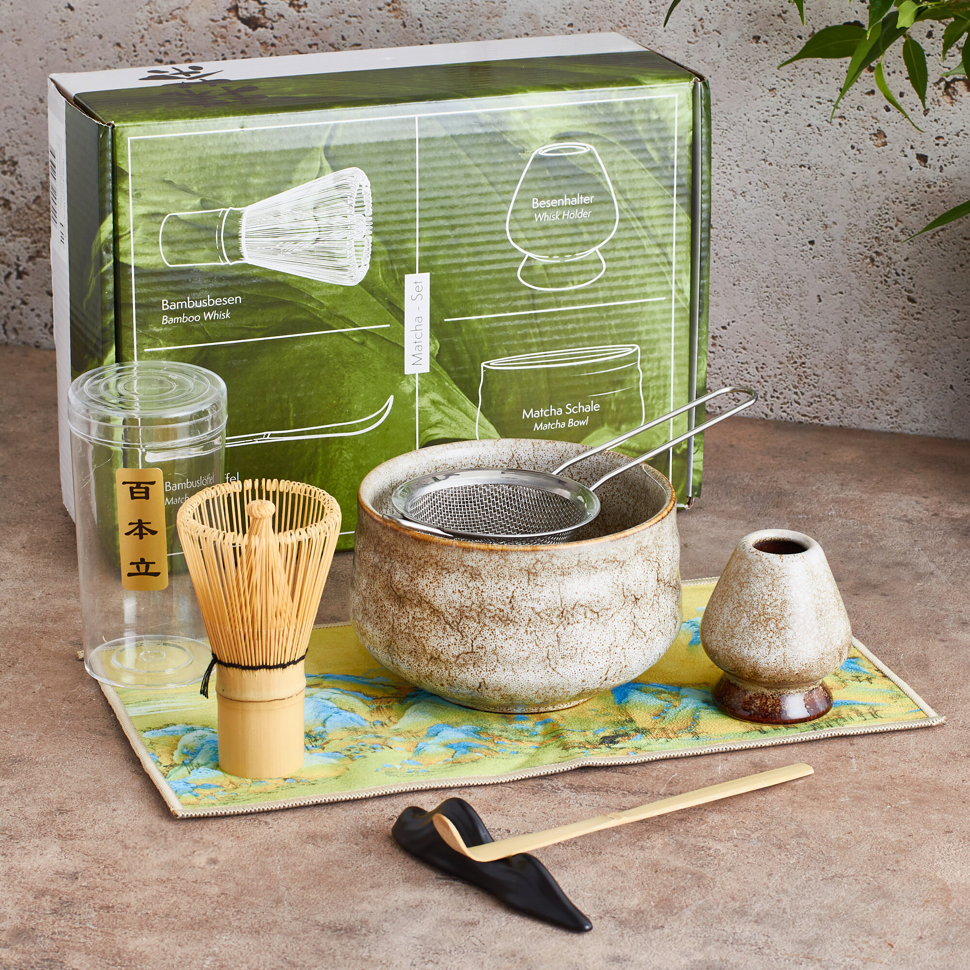 | Подробная комплектация | 1. Венчик для матча бамбуковый "Часен" 2. Ложка для матча мерная "Тясаку" 3. Чаша для заваривания Матча "Тяван" 4. Подставка под венчик для матча керамическая 5. Коврик для приготовления Матча 6. Ситечко 7. Подставка для ложечки |