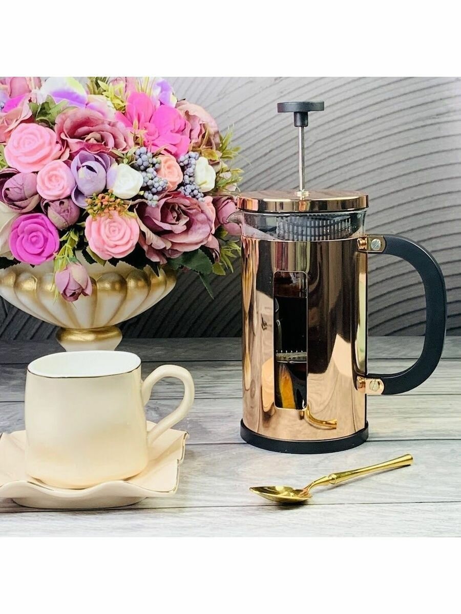 Френч-пресс "Lenardi" 1000 мл, золотистый, стекло, мытьё в посудомойке 1 881 ₽