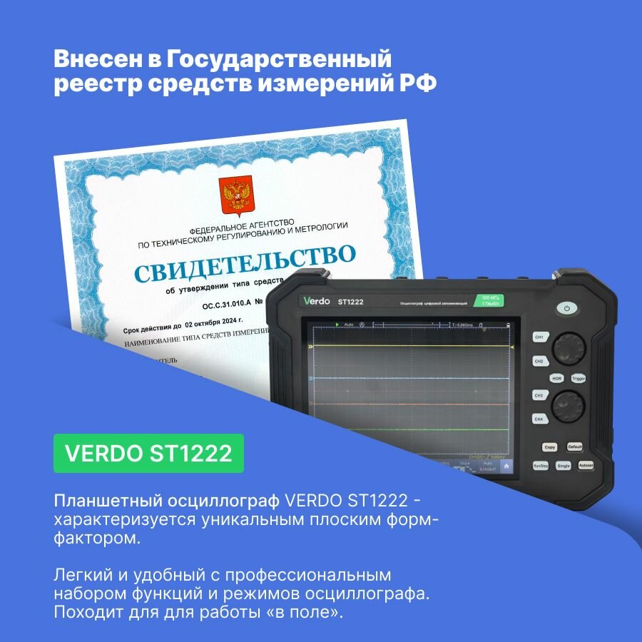 VERDO ST1222 Осциллограф планшетного типа 100 МГц, 2 канала, 8 бит информация: