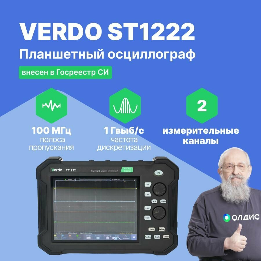 Отзывы на VERDO ST1222 Осциллограф планшетного типа 100 МГц, 2 канала, 8 бит