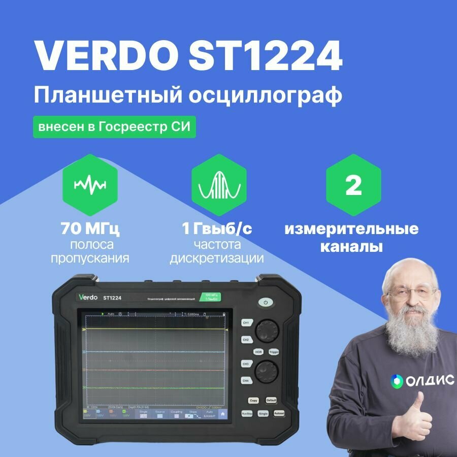 VERDO ST1224 Осциллограф планшетного типа 70 МГц, 2 канала, 14 бит информация: