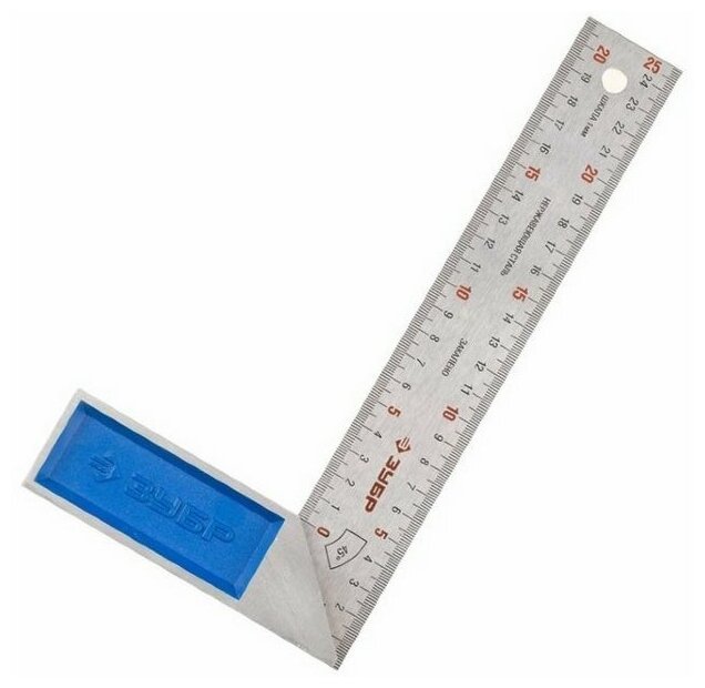 Уровни, рулетки, мерные ленты, линейки, угольники ЗУБР "эксперт" 34393-25 Угольник {столярный, гравированная шкала, алюминиевая рукоятка, нержавеющее полотно 37мм, 250мм }