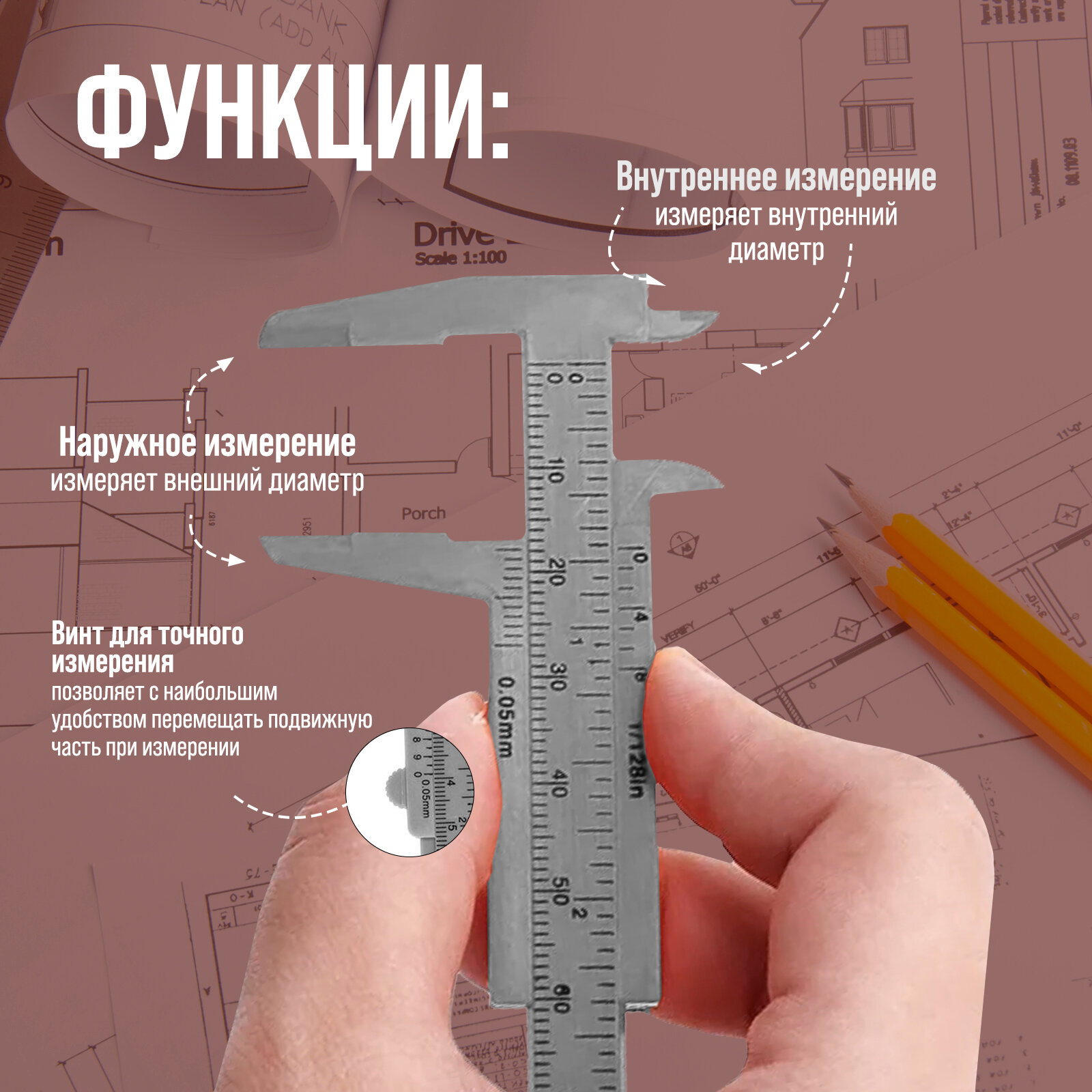 Штангенциркуль ЛОМ, с глубиномером, цена деления 0.05 мм, пластиковый, 150 мм (комплект из 14 шт) информация: