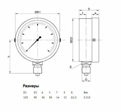 Манометр радиальный 1/2" 100мм (0...16 бар) ЗТП МП100М5 0..1.6 МПа информация: