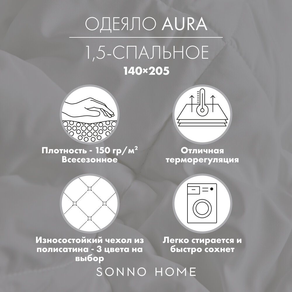 Одеяло SONNO AURA 1,5-сп. 140х205 гипоаллергенное , наполнитель Amicor TM Цвет Французский серый 4 290 ₽
