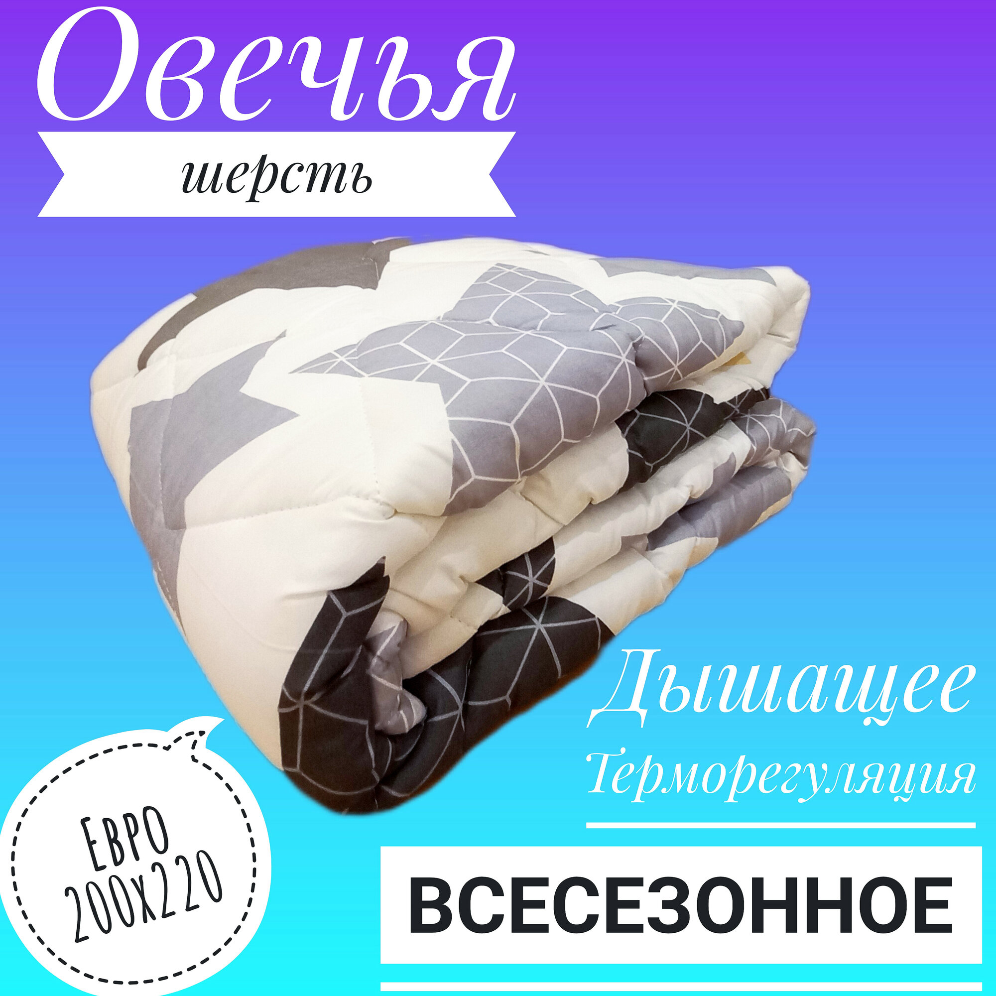 Отзывы на Одеяло Всесезонное Овечья Шерсть, Евро 200х220, чехол микрофибра