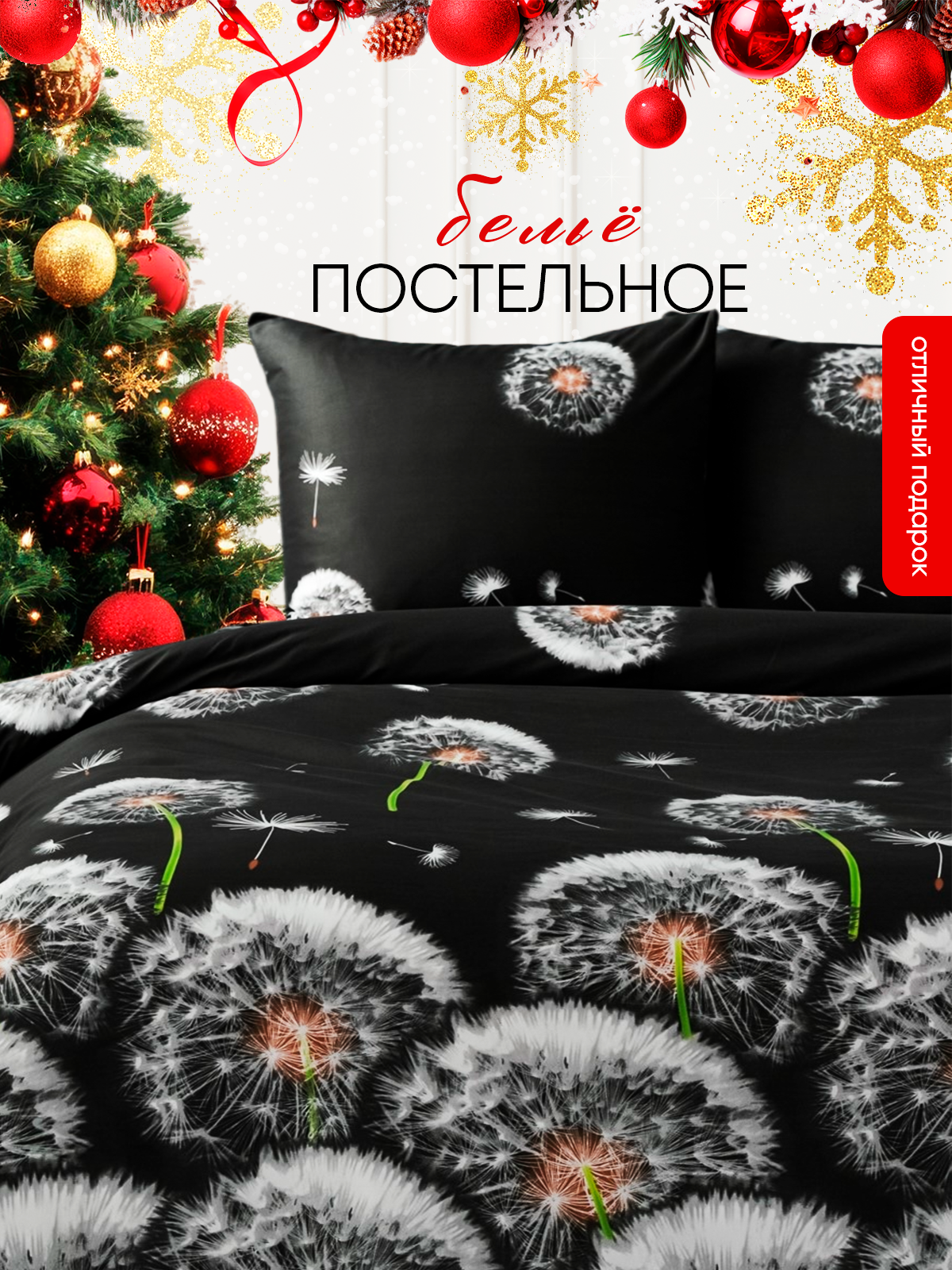 Павлина Постельное бельё Павлайн 2сп Одуванчики черн 175х215, 180х215, 70х70см 2шт полисатин 70г/м, полиэстер 100% 3 443 ₽