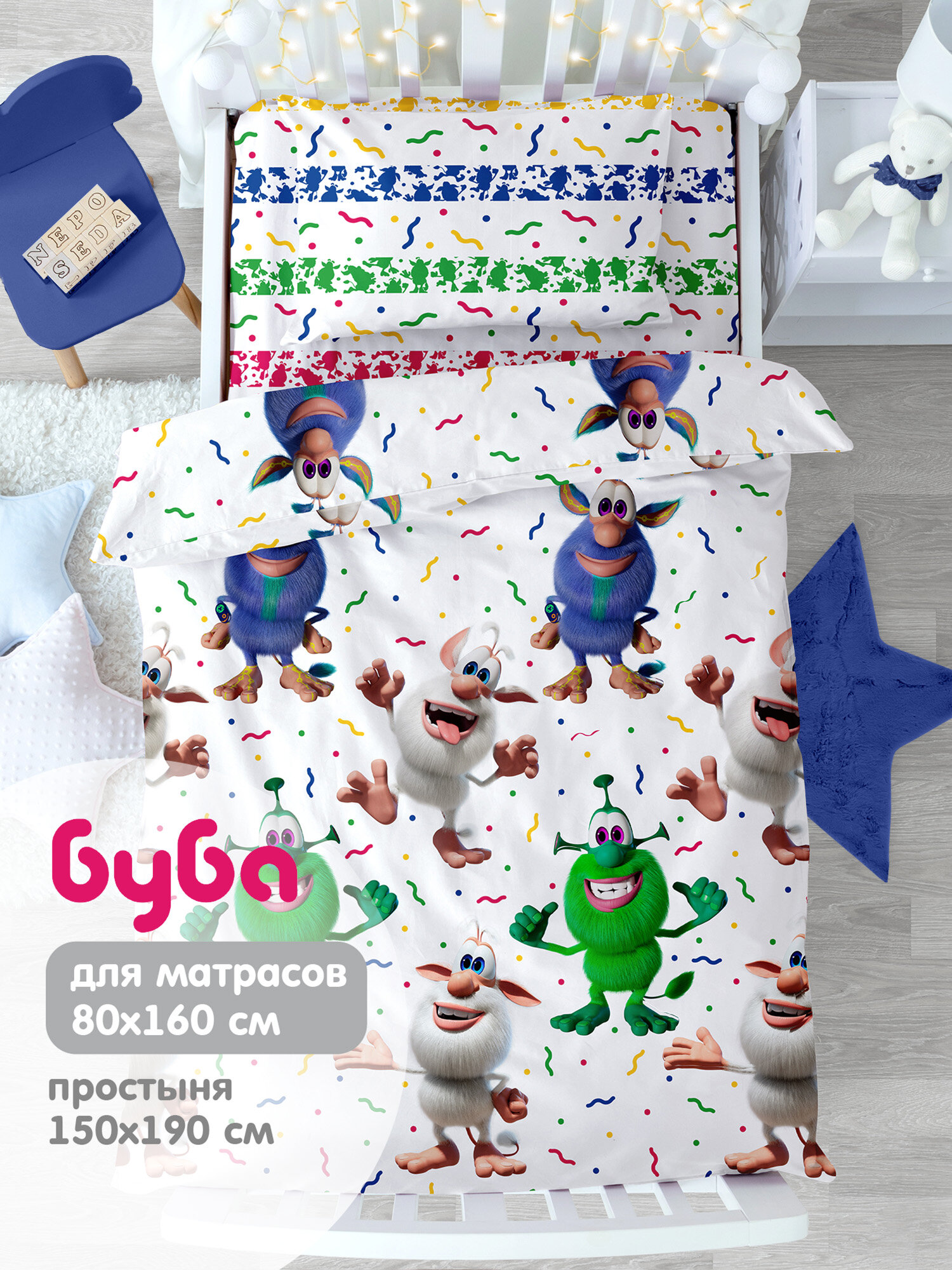 Отзывы на Детское постельное белье 160х80 Непоседа, Поплин, нав. 40х60, Забавный Буба (Буба)