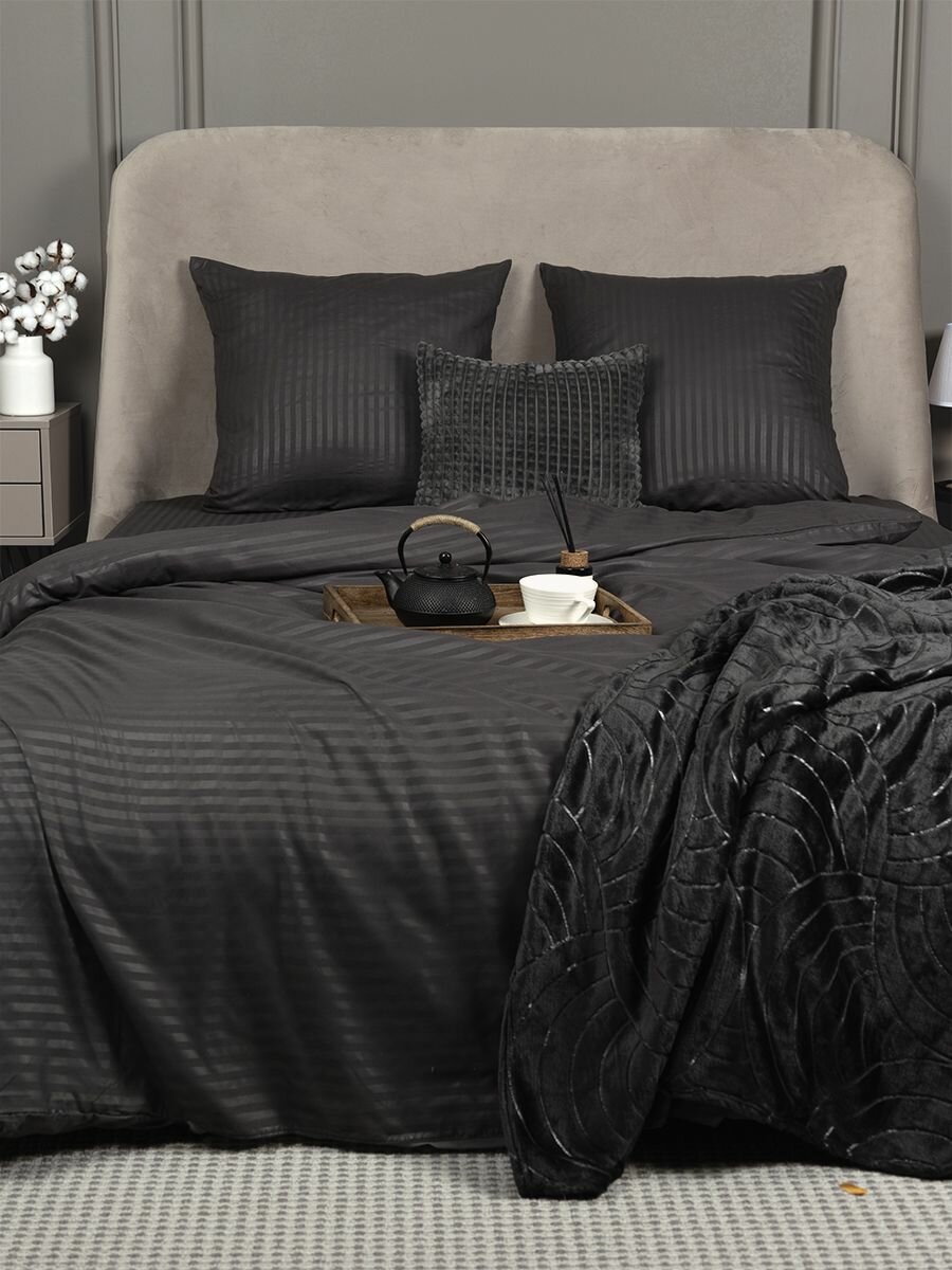 Отзывы на Постельное белье 2 спальное / Комплект постельного белья 2-спальный с Евро простыней Samy Страйп графит