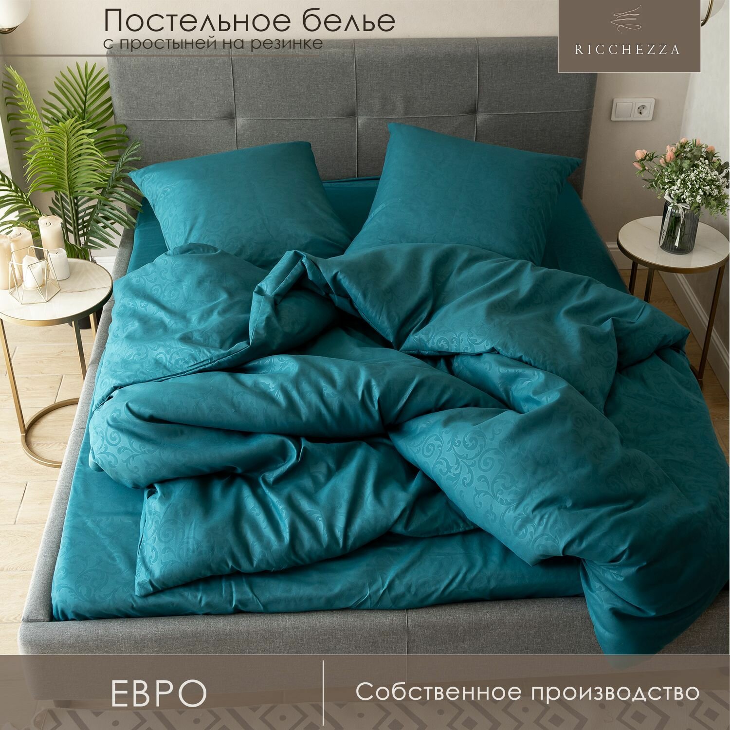 Постельное белье Евро Простыня на резинке 200х220 см информация: