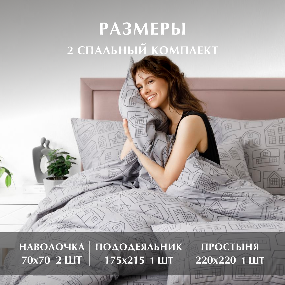 Постельное белье, Бязь, 2х спальное, 2 наволочки 70х70, GM, Scandi 100% хлопок 2 241 ₽