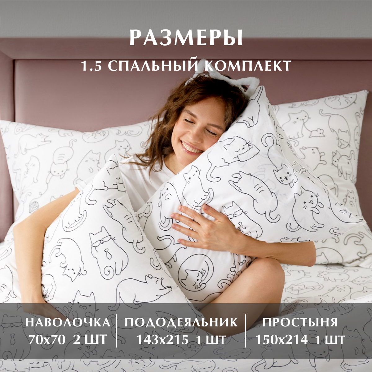 Комплект постельного белья, Бязь, Guten Morgen, 1.5 спальный с нав. 70х70 см, рис.1145, Cat party информация: