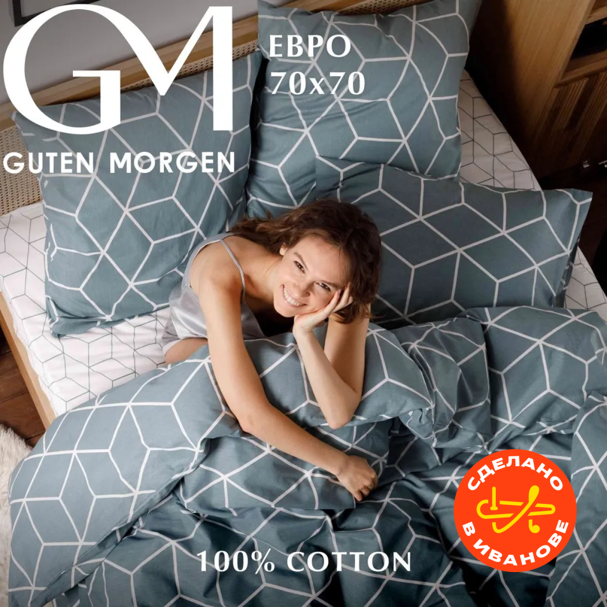 Постельное бельё/евро/простынь 214x240/наволочки 70x70/комплект/бязь/Guten Morgen
