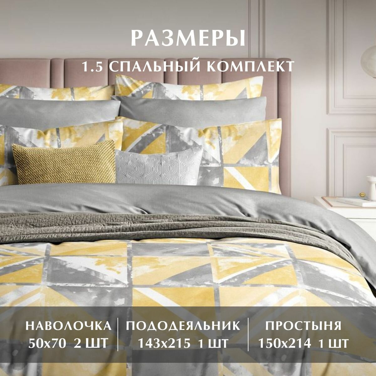 Постельное белье Сказка Сатин "Lester" 1,5-сп наволочка 50х70 1шт Простынь на резинке 90х200 см Пододеяльник 145х215 см