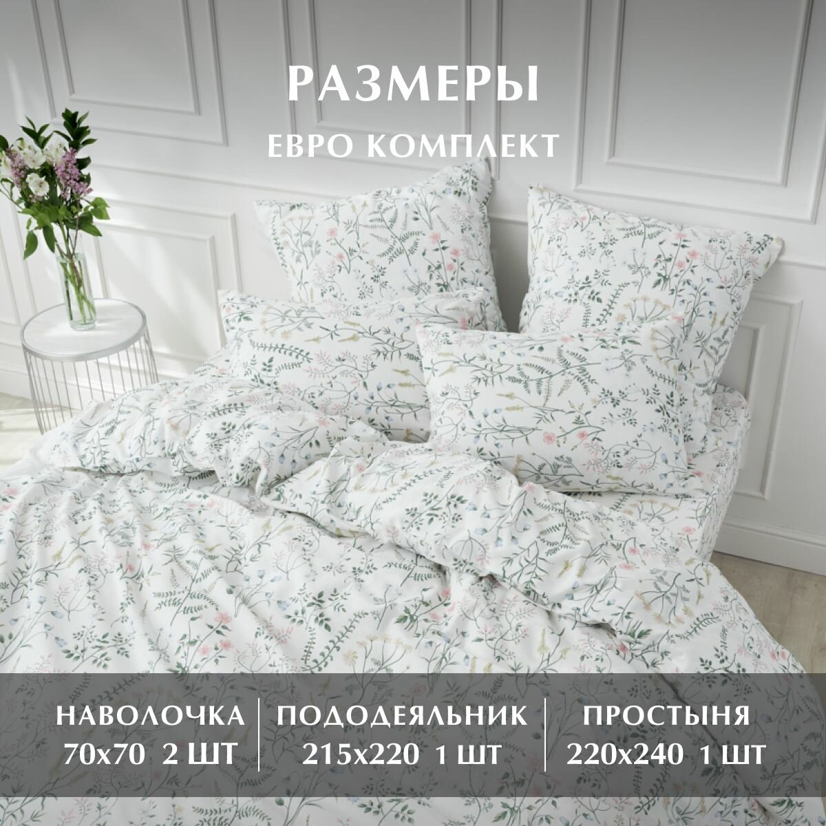 Постельное белье, Бязь, Евро, 2 наволочки 70х70, GM, Flower vines 100% хлопок 2 619 ₽