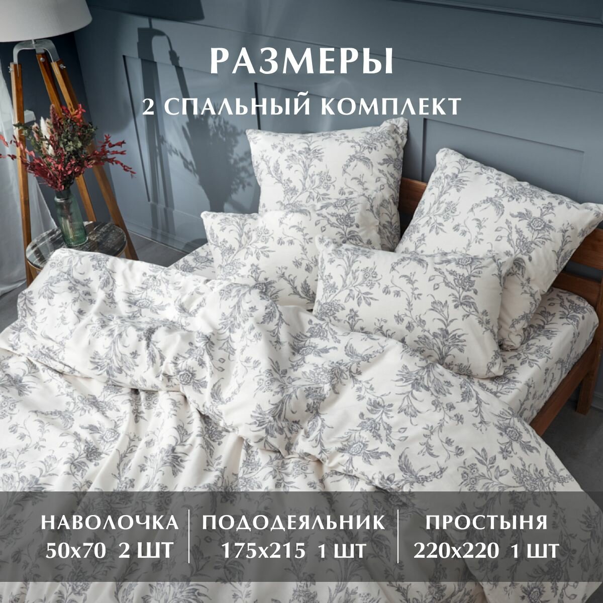 Комплект постельного белья, 2 спальный Макси с нав. 70х70 см, Бязь, Guten Morgen, Twilight peonies, рис.1075 1 897 ₽