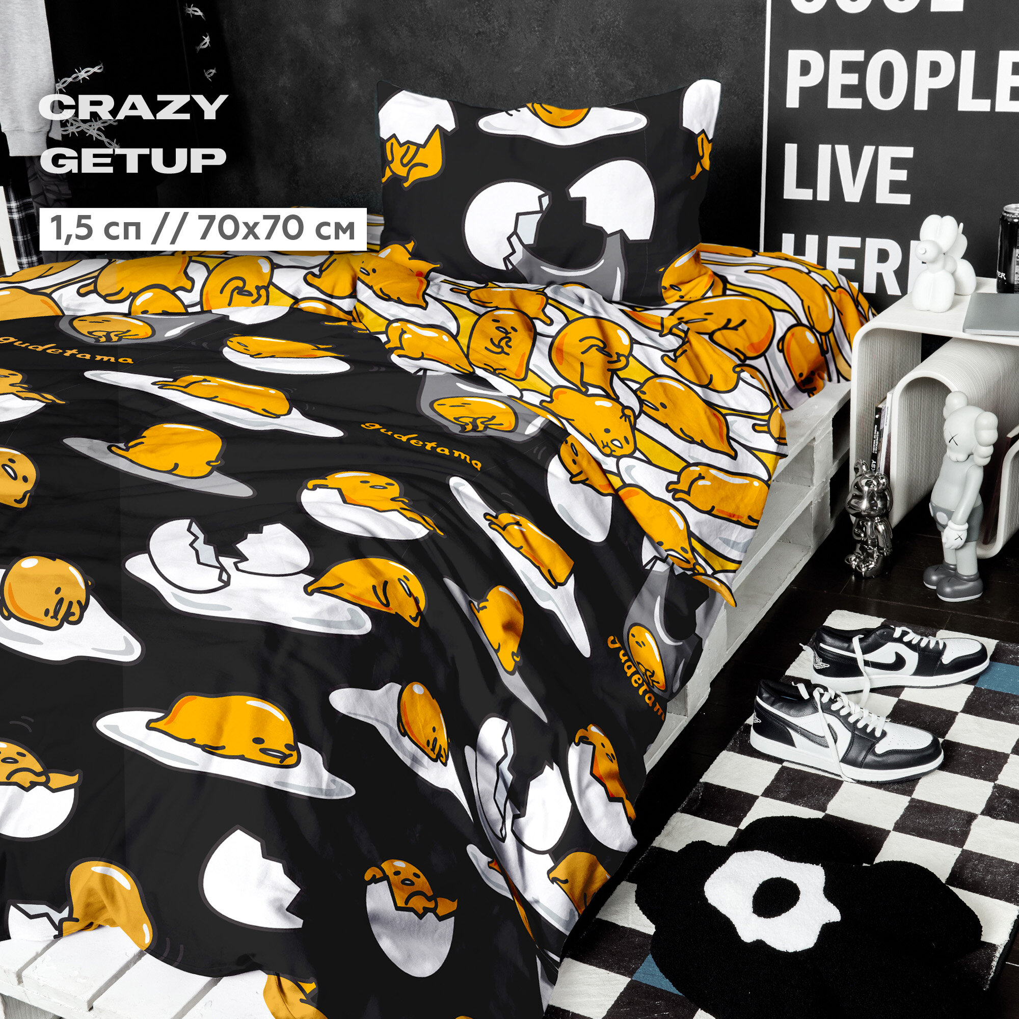 Отзывы на Постельное белье 1.5 спальное Crazy Getup, Поплин, нав. 70х70, Gudetama Black (Гудетама)