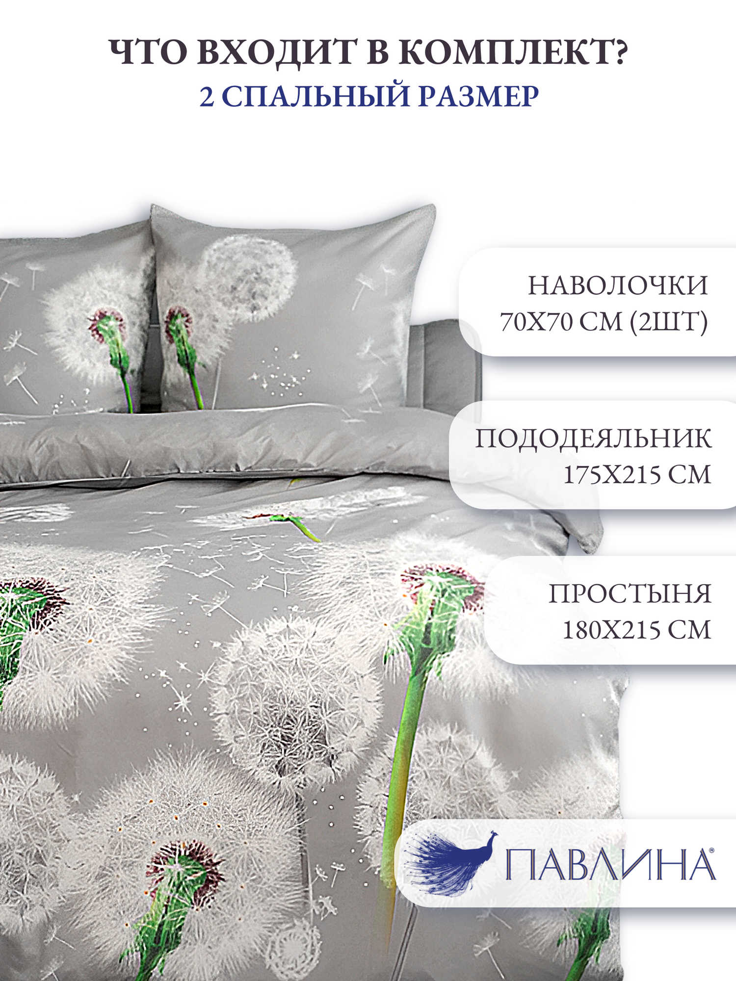 Постельное белье 2 спальное Павлина Одуванчики, Полисатин, наволочки 70x70 информация: