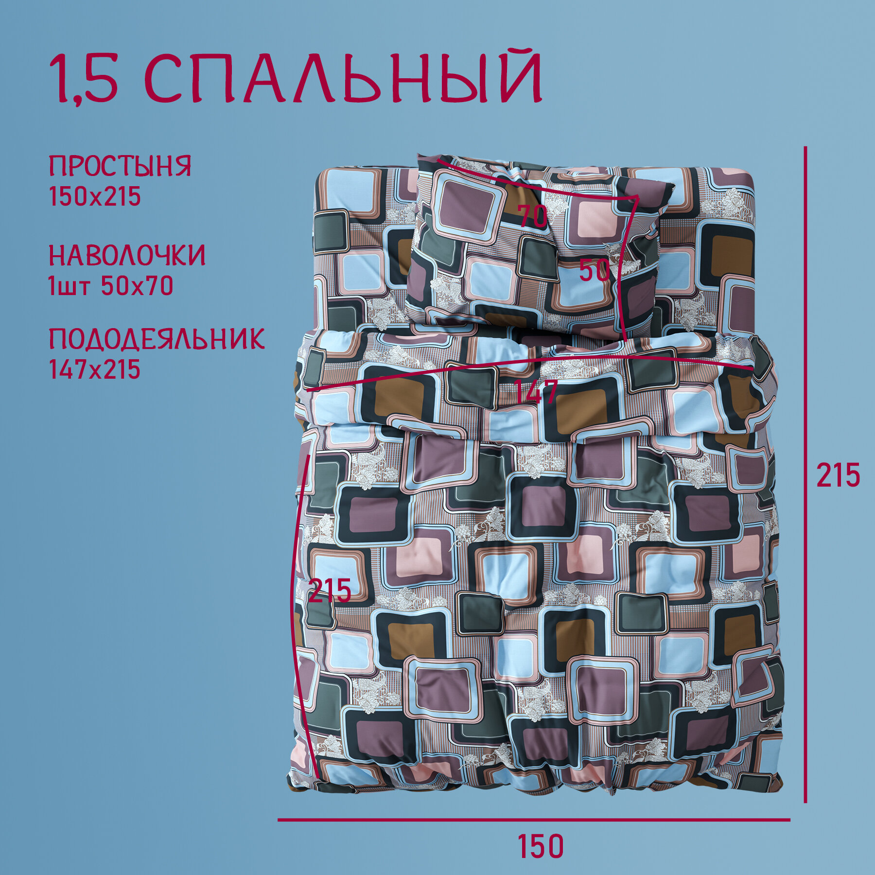 Постельное белье Сказка Сатин "Lester" 1,5-сп наволочка 50х70 1шт Простынь на резинке 90х200 см Пододеяльник 145х215 см