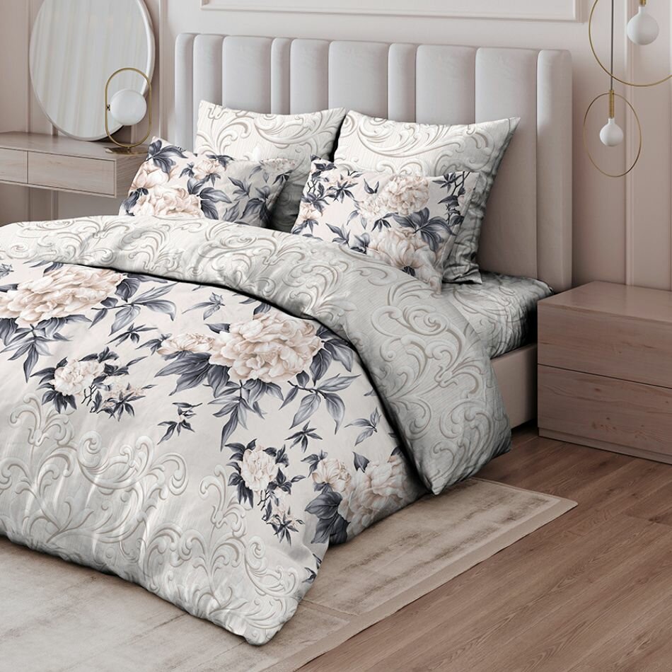Постельное белье "Василиса" Евро, Поплин, наволочки 70х70 см, Пионовый шик информация: