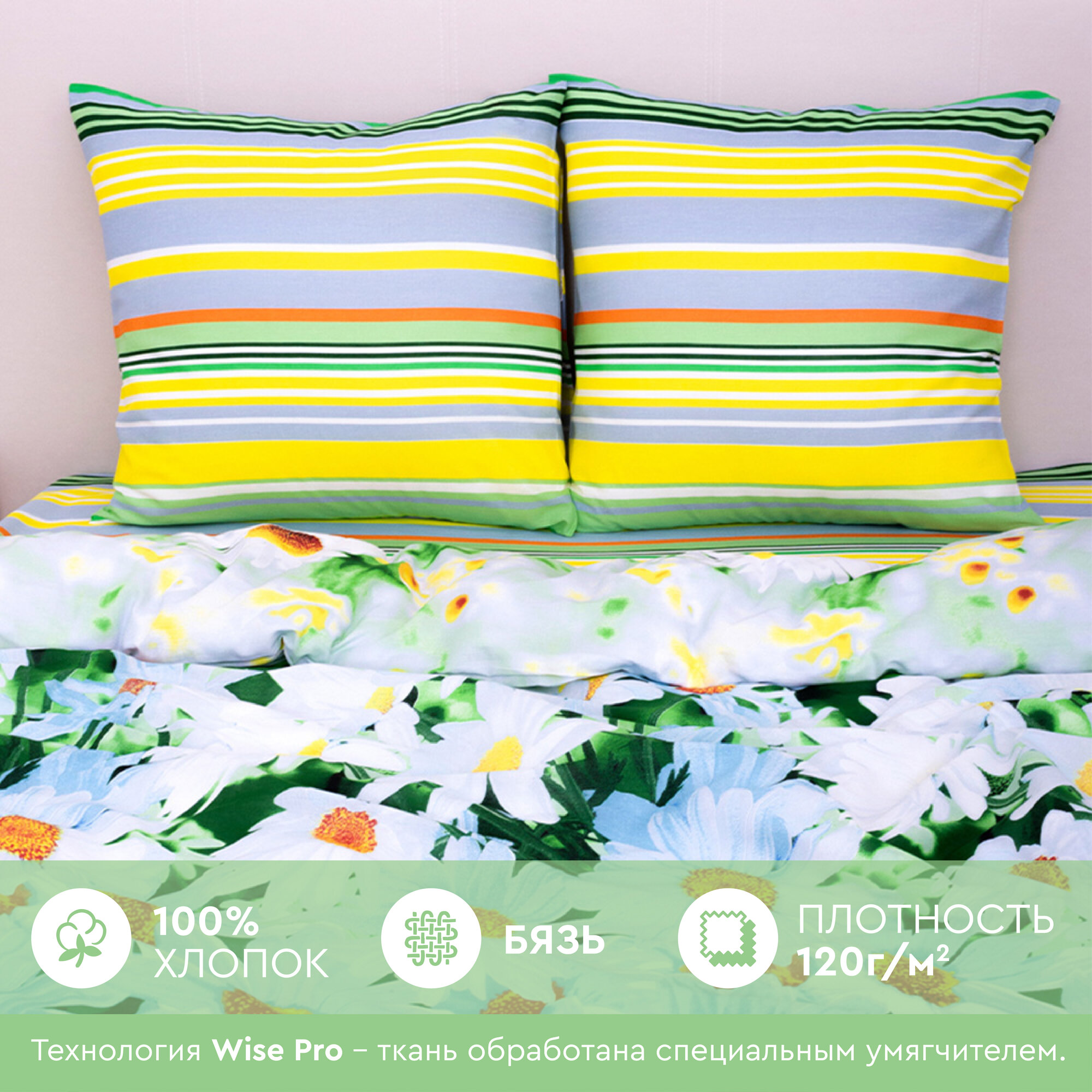 Постельное белье Василиса Евро, Бязь, наволочки 70х70 см, Ромашковый вальс