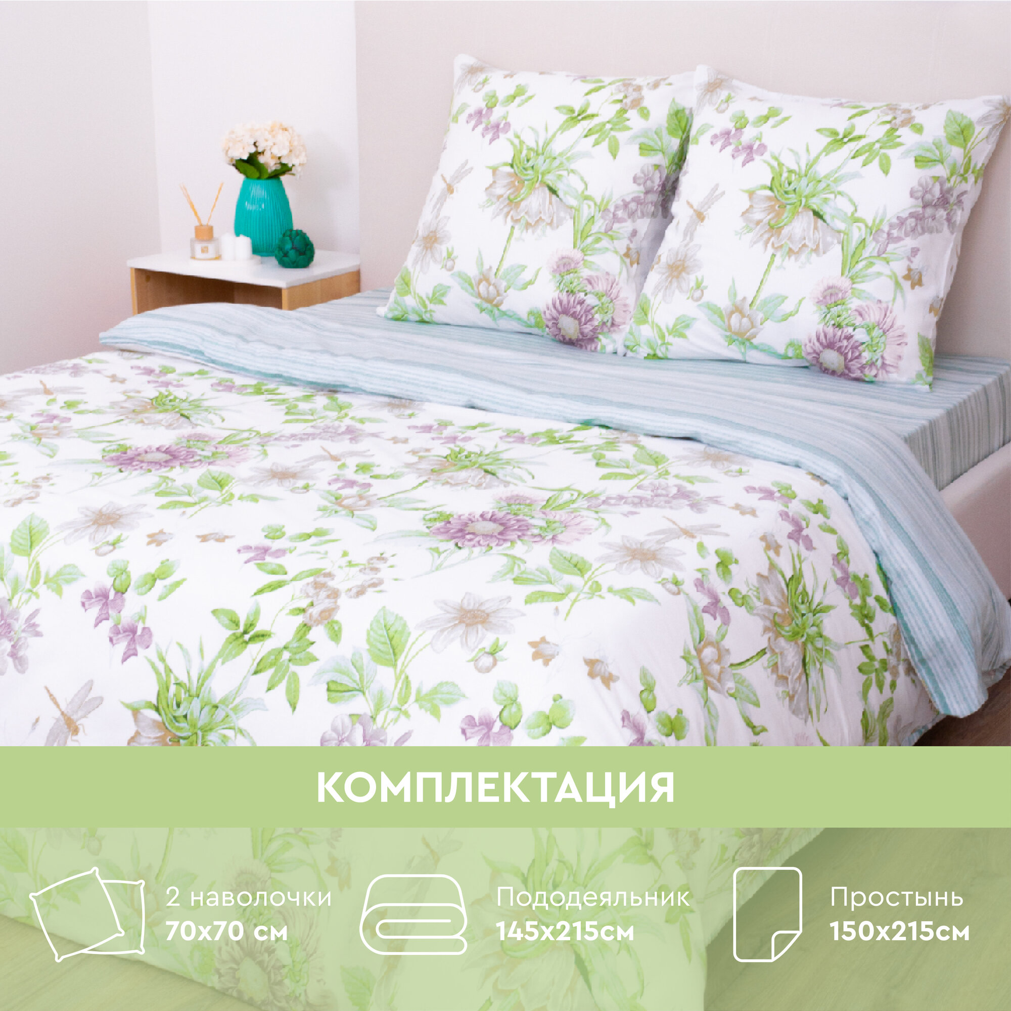 Постельное белье Василиса 1,5-спальное, Бязь, наволочки 70х70 см, Ботаника информация: