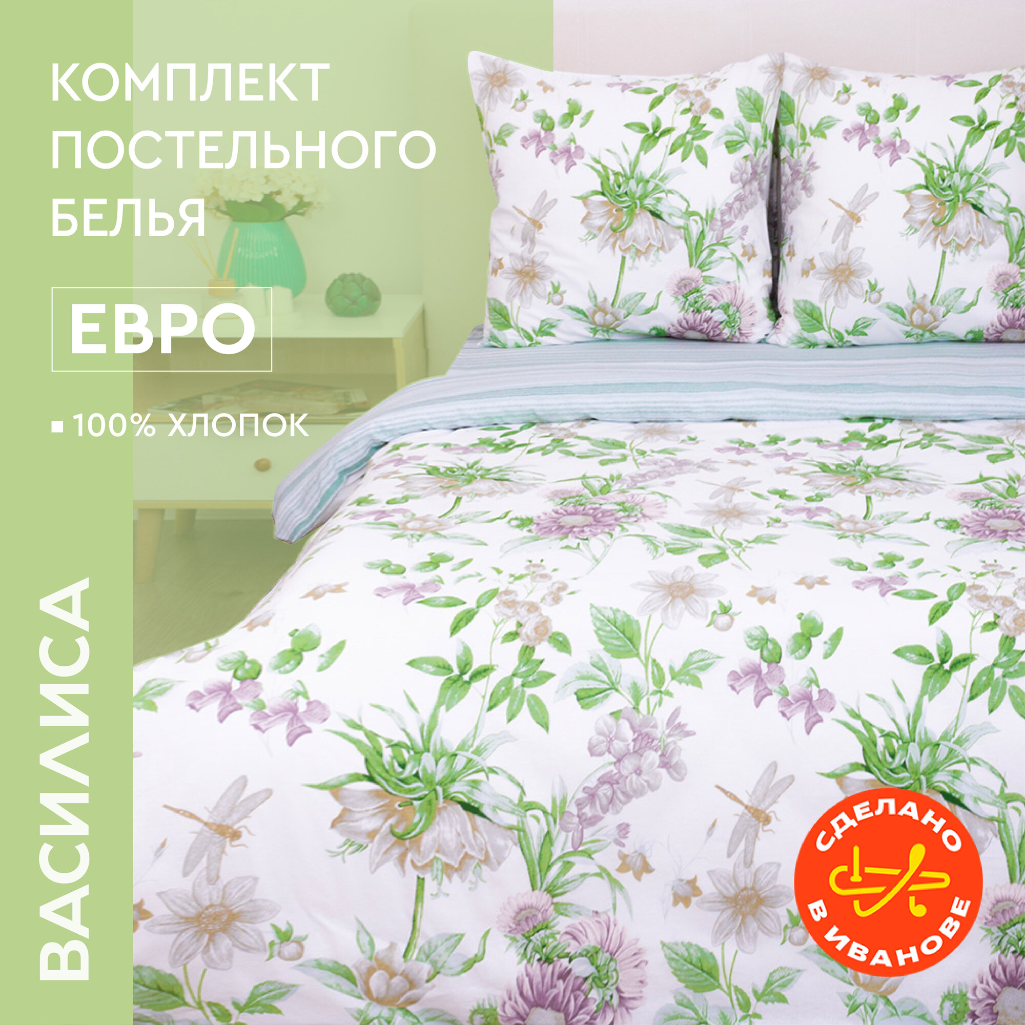 10 цен на Постельное белье Василиса Евро, Бязь, наволочки 70х70 см, Ботаника
