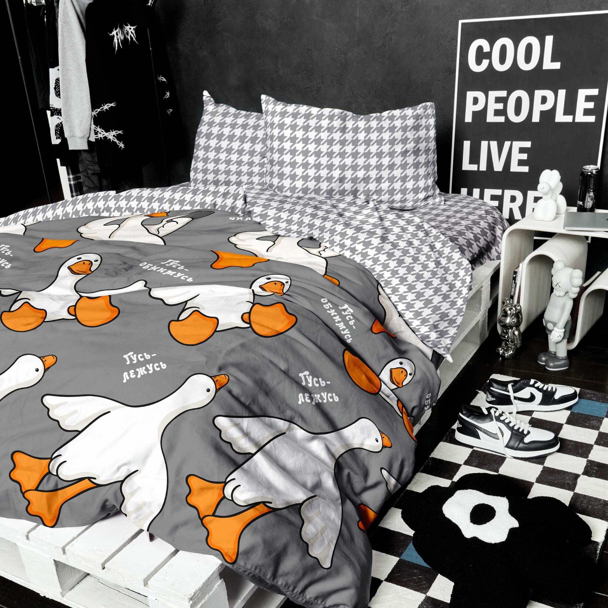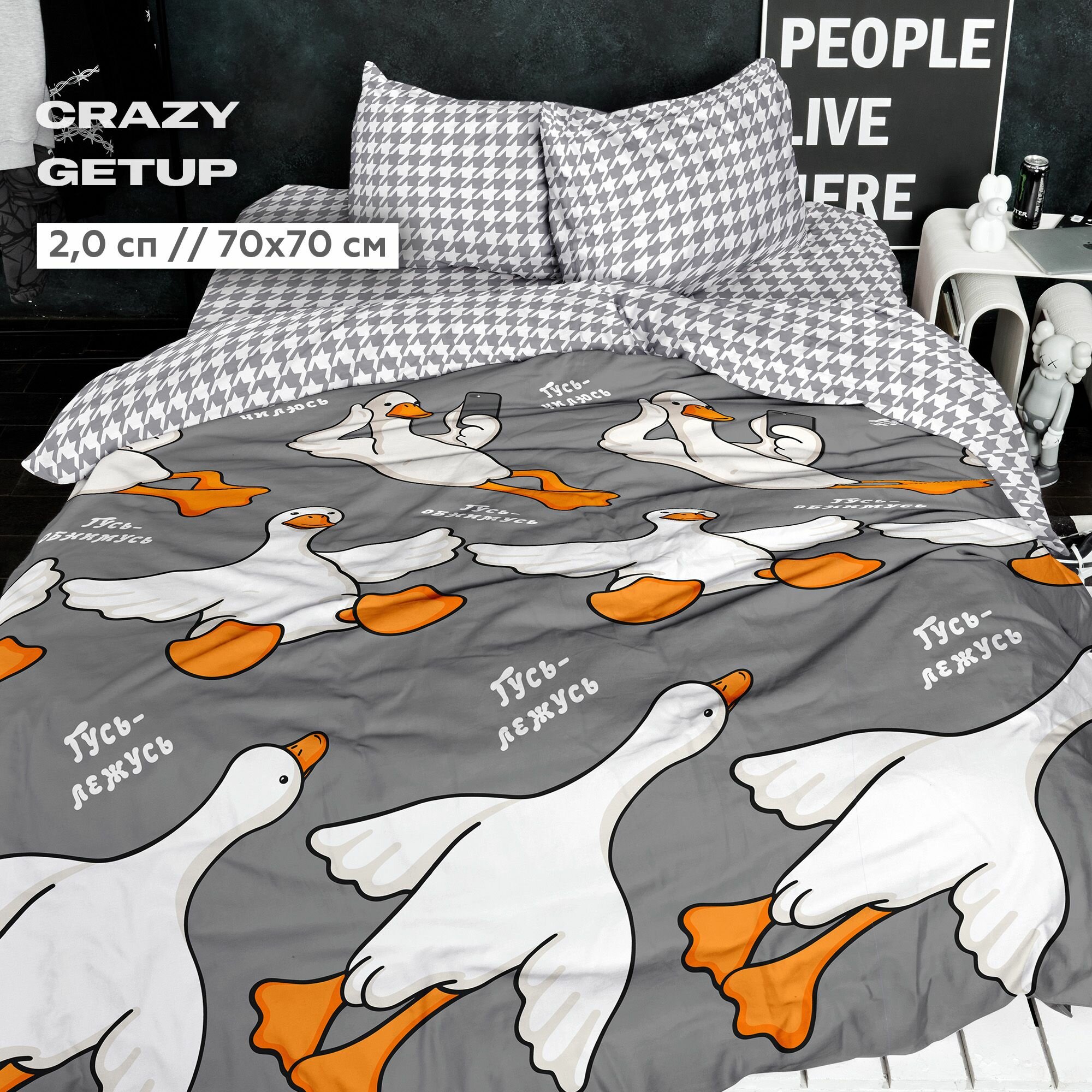 Отзывы на Постельное белье 2 спальное Crazy Getup, Поплин, нав. 70х70, Гусь обнимусь серый