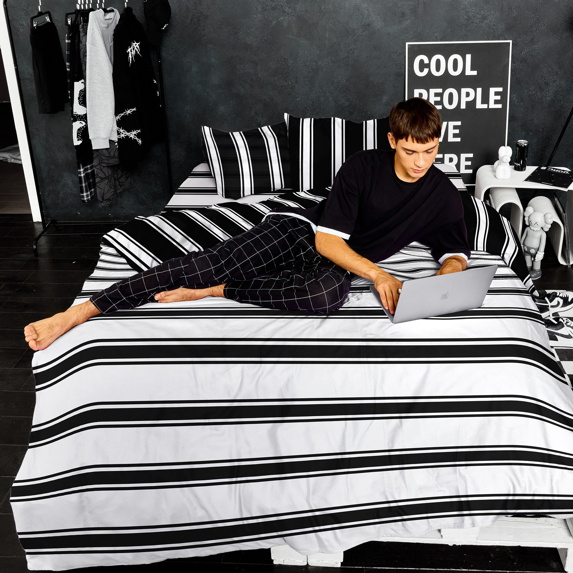 10 цен на Постельное белье 1.5 спальное Crazy Getup, Перкаль, нав. 70х70, Stripes (полоски полосы черно-белое)