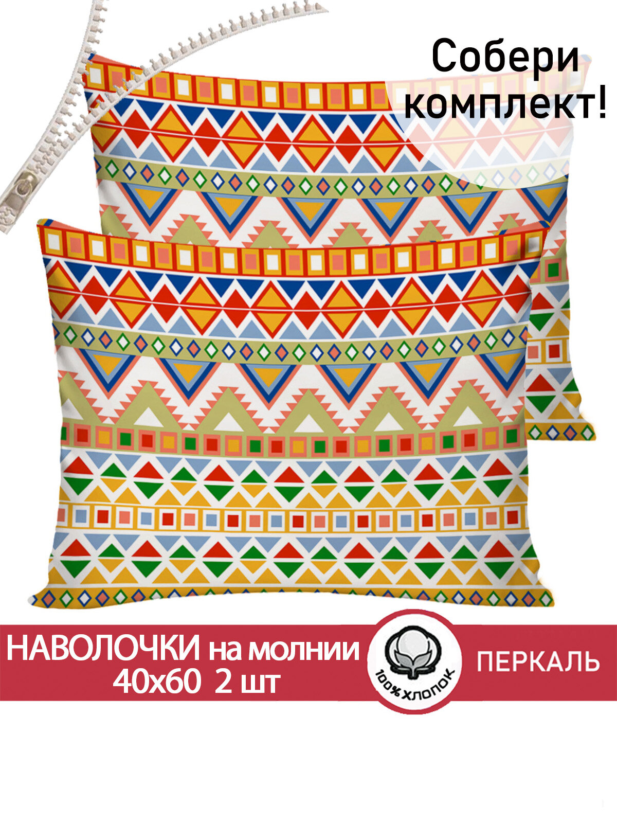 Наволочка 2шт на молнии 40х60 см Сказка "Орнамент", ткань перкаль, 100% хлопок 700 ₽
