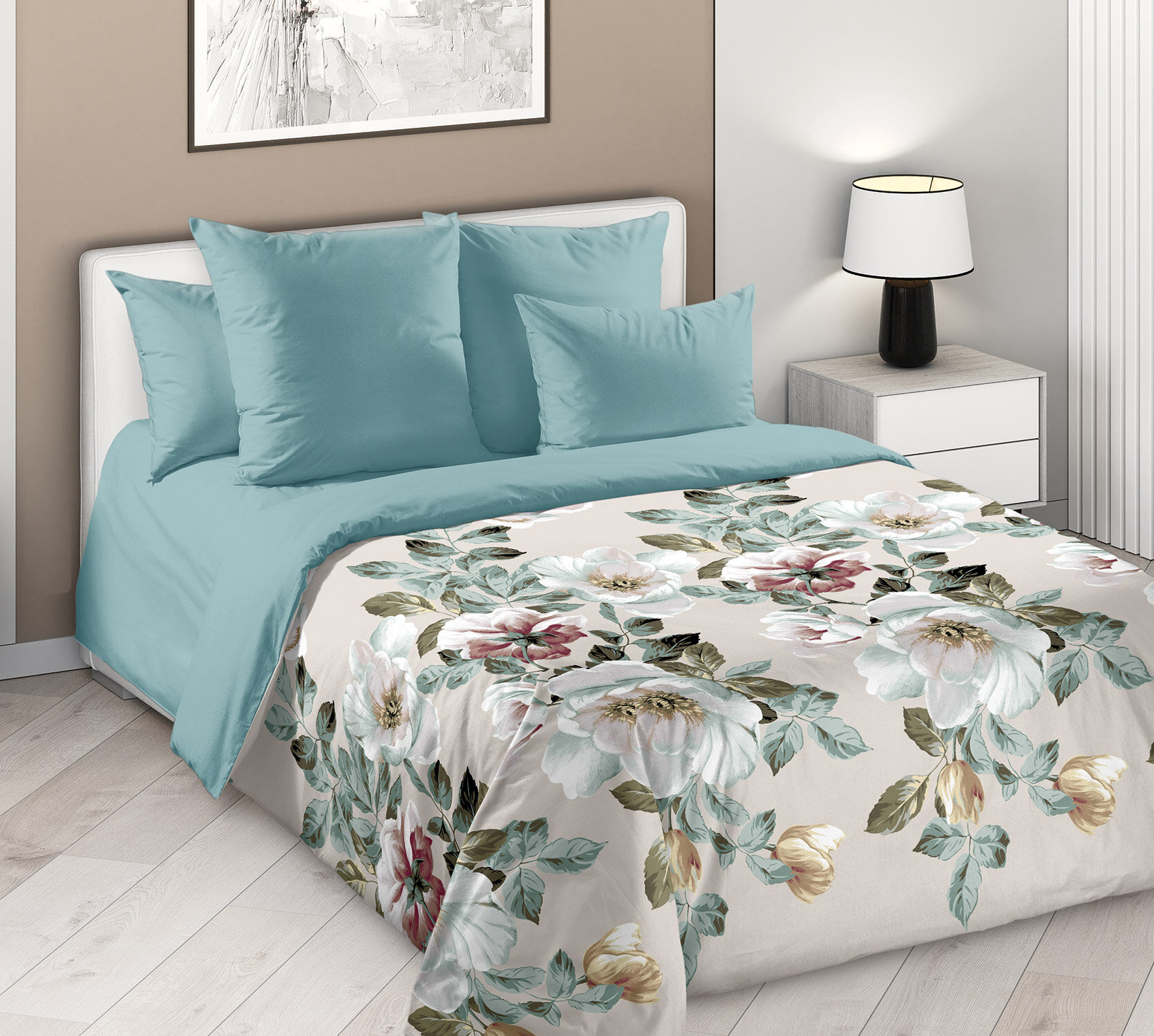 Пододеяльник Милагрос перкаль х/б 100%, 220х240 см, беж/ментол, плотность 110 г/м, 5 850 ₽