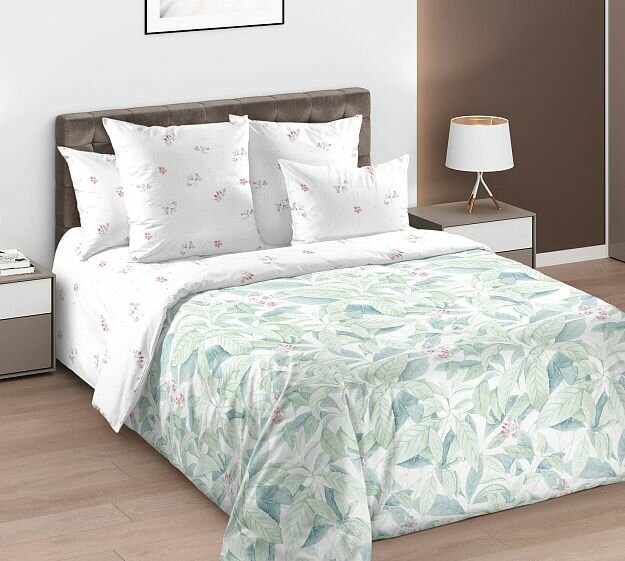 Пододеяльник Легкая прохлада перкаль х/б 100%, 180х210 см, белый/зел., плотность 110 г/м, 2 648 ₽