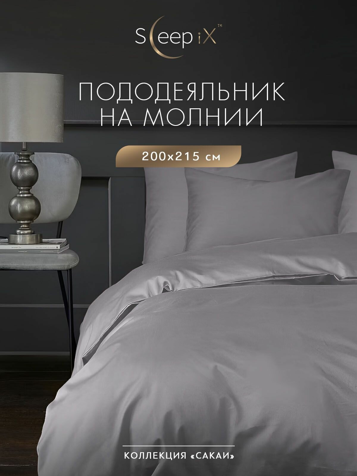 SleepIX Пододеяльник на молнии полуторный "Сакаи" перкаль, хлопок, 145x205, темно-серый 2 590 ₽