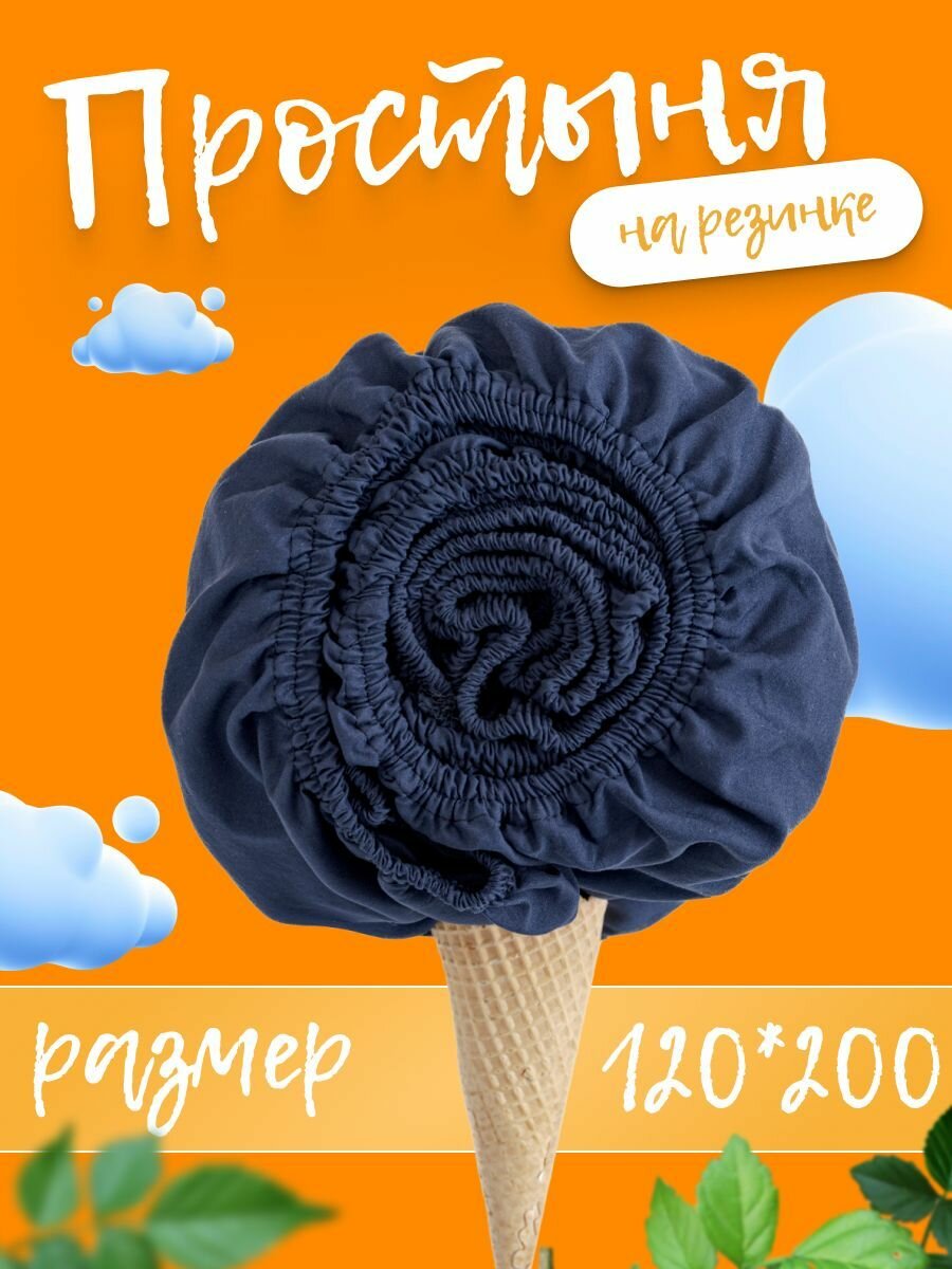 Простынь натяжная однотонная на резинке по периметру, 120х200х20 см информация: