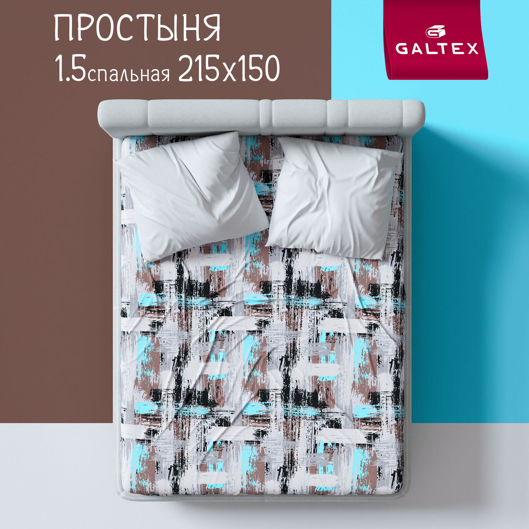 Простыня 1,5-спальная 150х215 Galtex Нежность поплин Гранж бирюзовый информация: