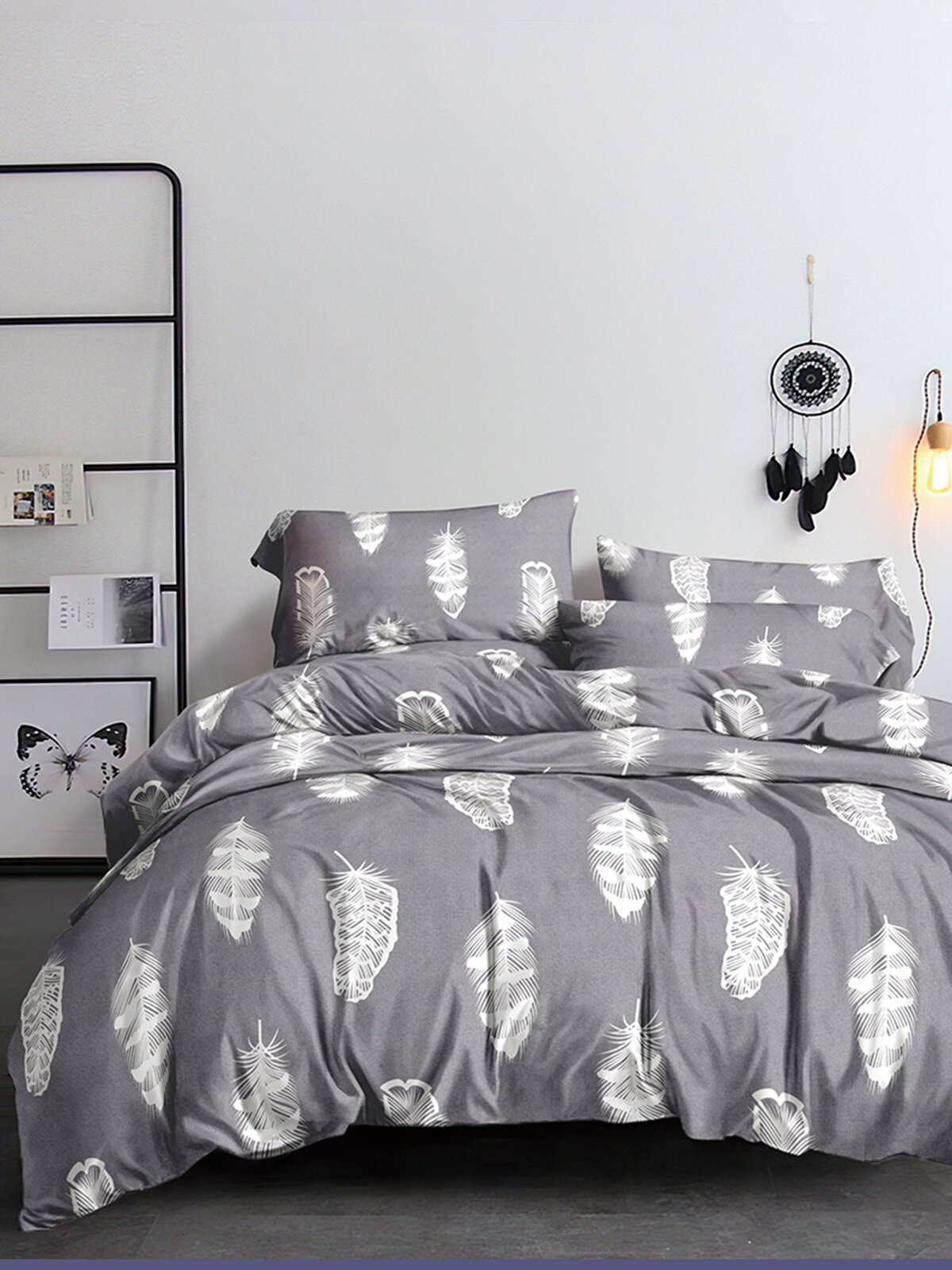 10 цен на Простынь Simple House "Feather on grey" 200х215 см