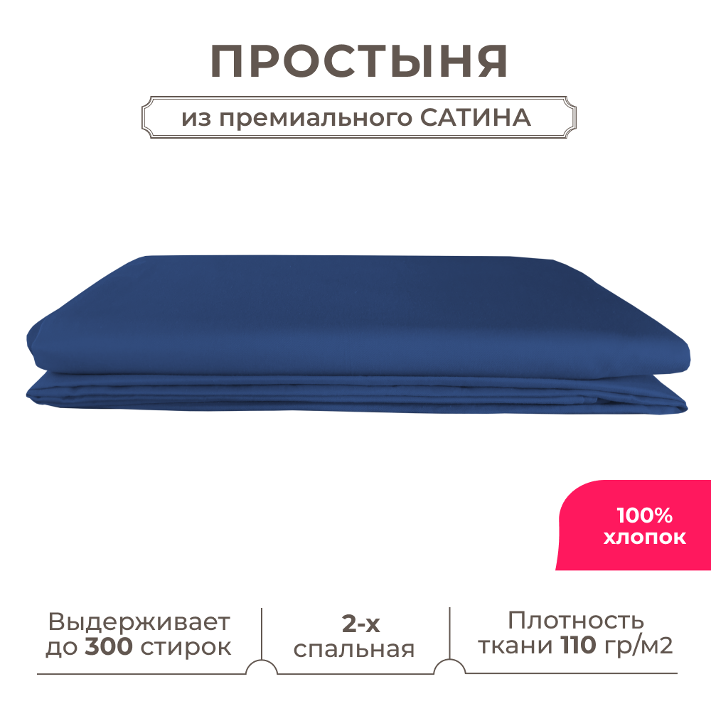 Двуспальная простынь Lisleep 180х230, классическая, сатин (100% хлопок), синий информация: