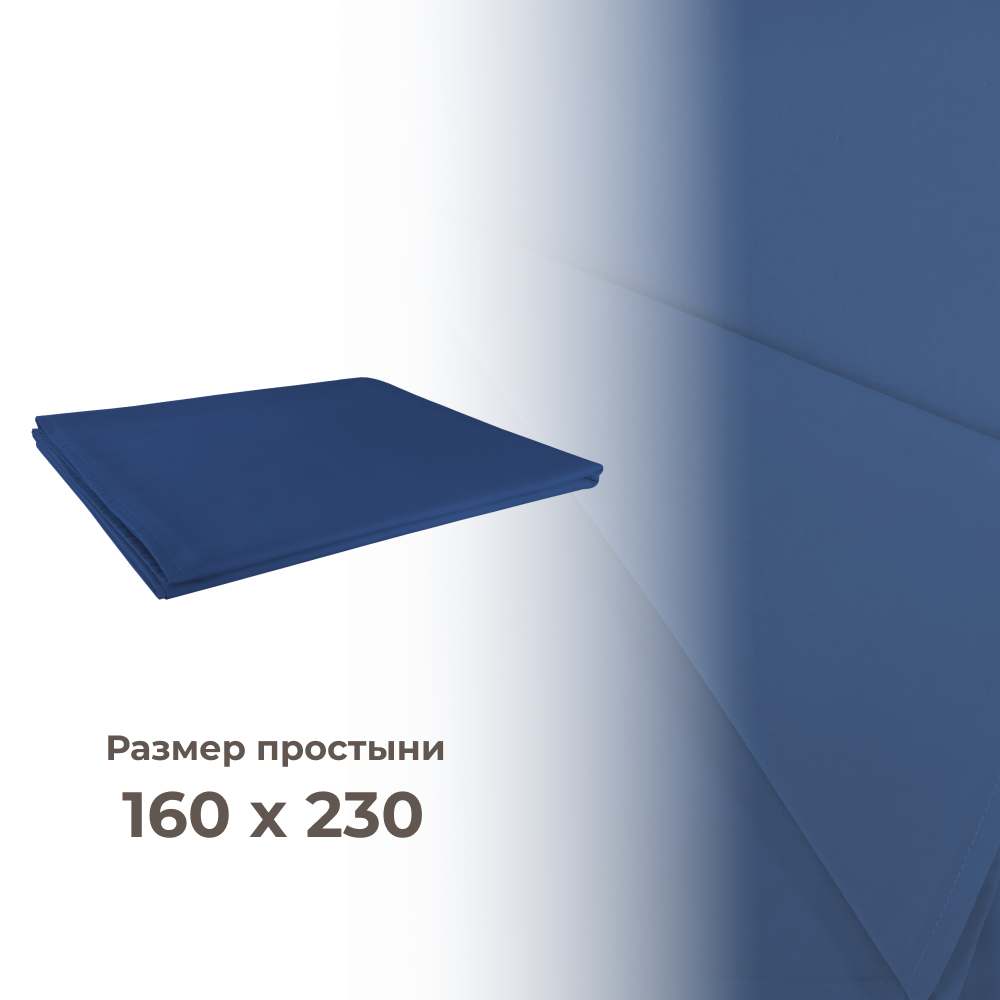 1,5 спальная простынь Lisleep 160х230, классическая, сатин (100% хлопок), синий информация:
