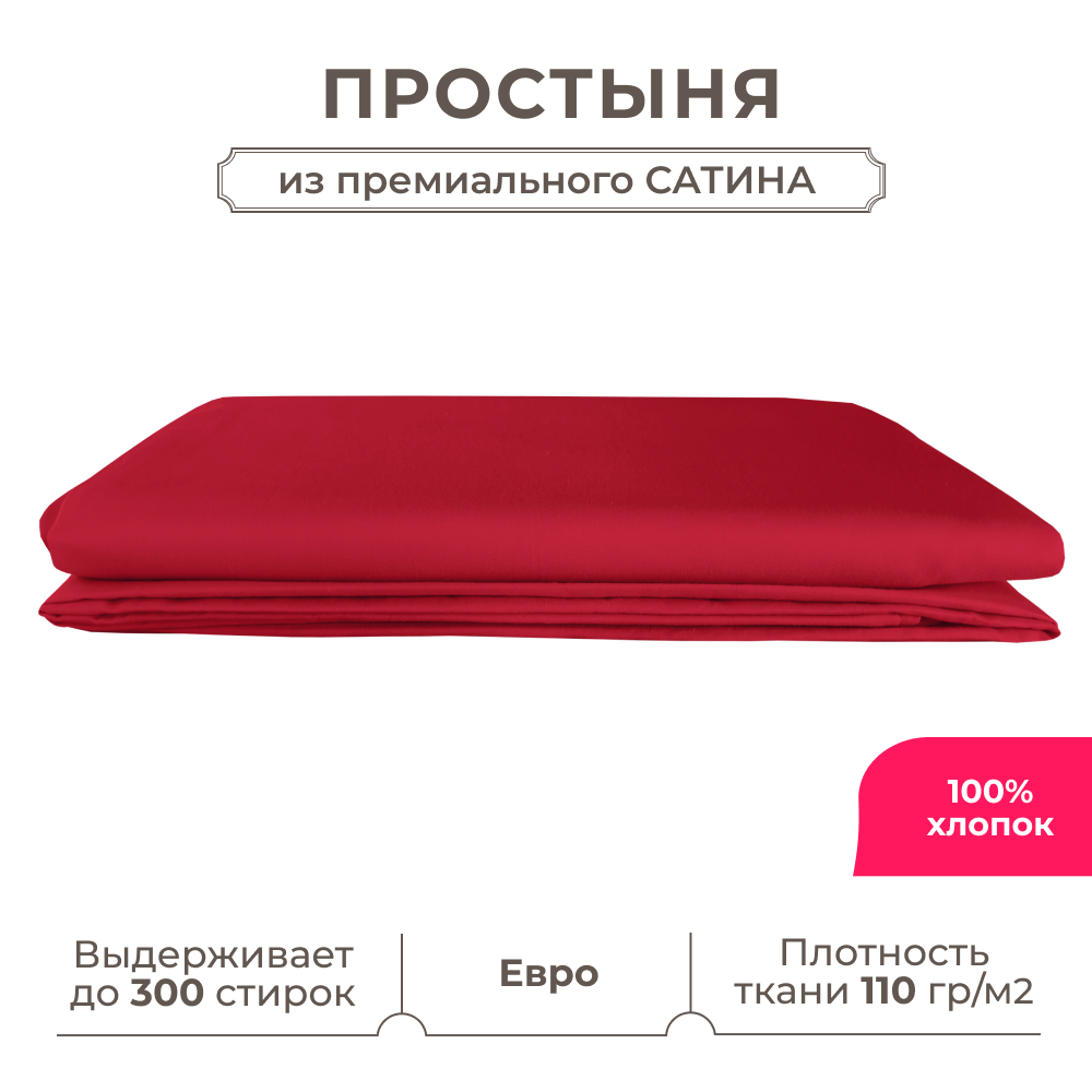 10 цен на Евро простынь Lisleep 220х240, классическая, сатин (100% хлопок), красный