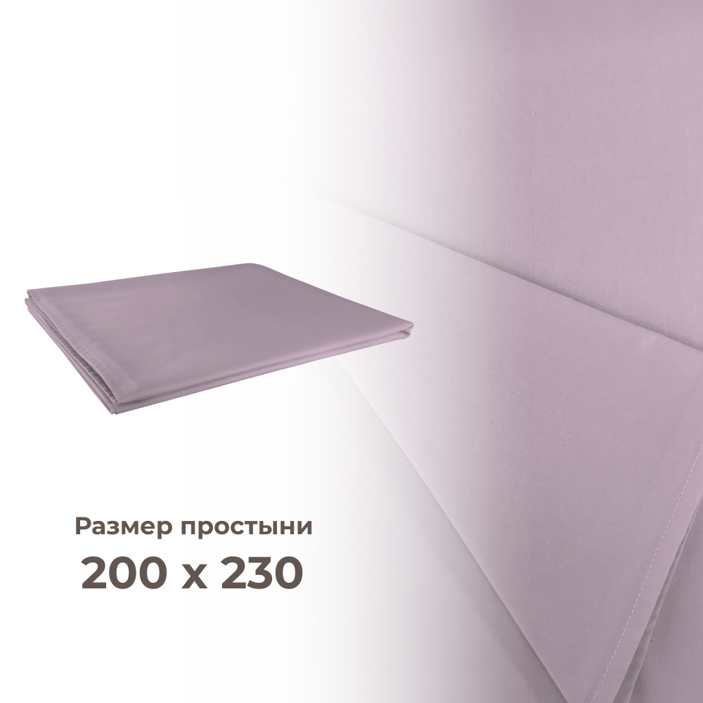 Двуспальная простынь Lisleep, 200х230, классическая, сатин (100% хлопок), баклажановый 1 390 ₽