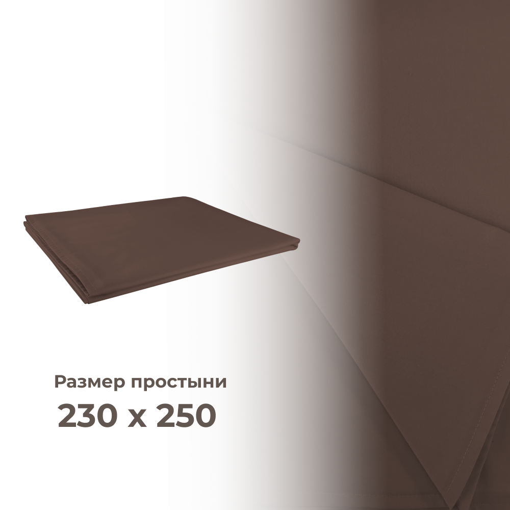 Евро простынь Lisleep 230х250, классическая, сатин (100% хлопок), кофейный 2 380 ₽