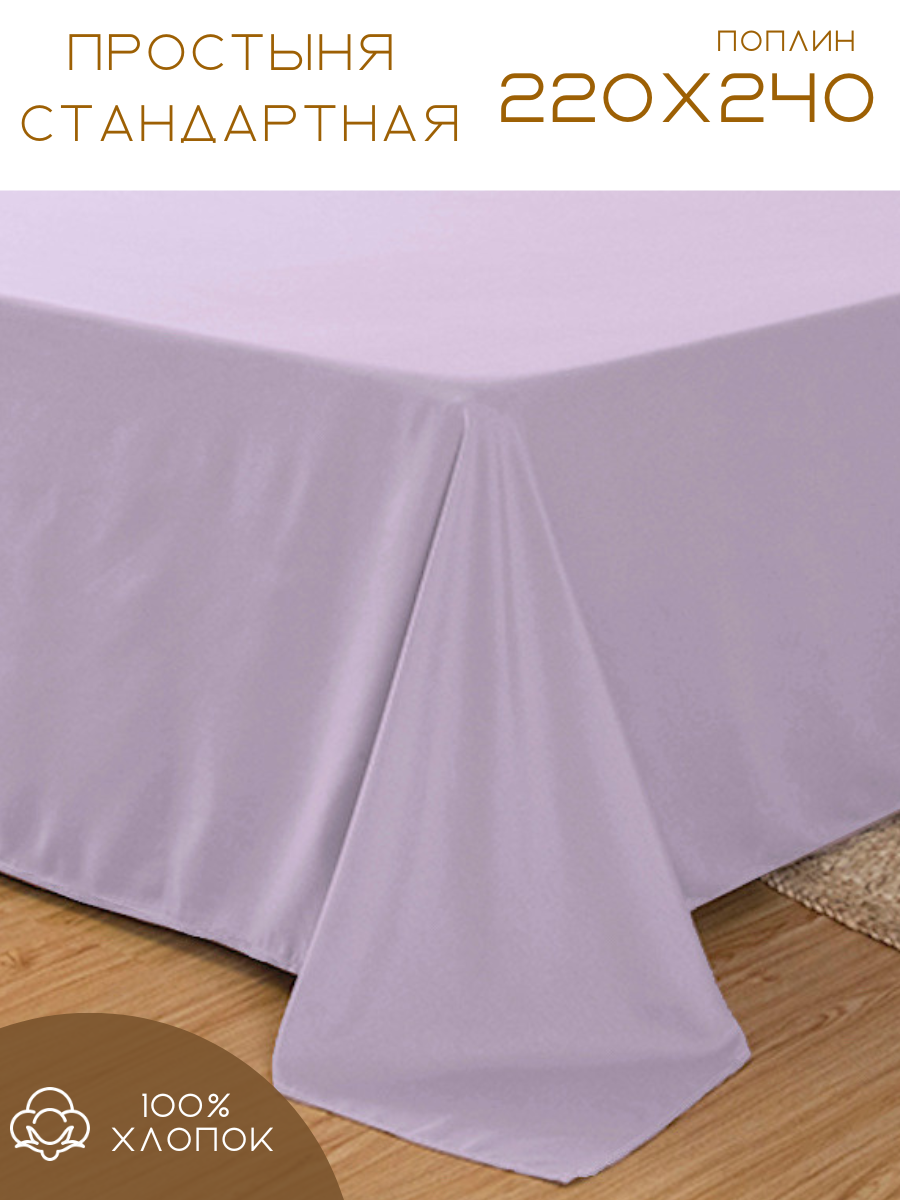 Простынь евро 220х240 см поплин сиреневая, Витэлия информация:
