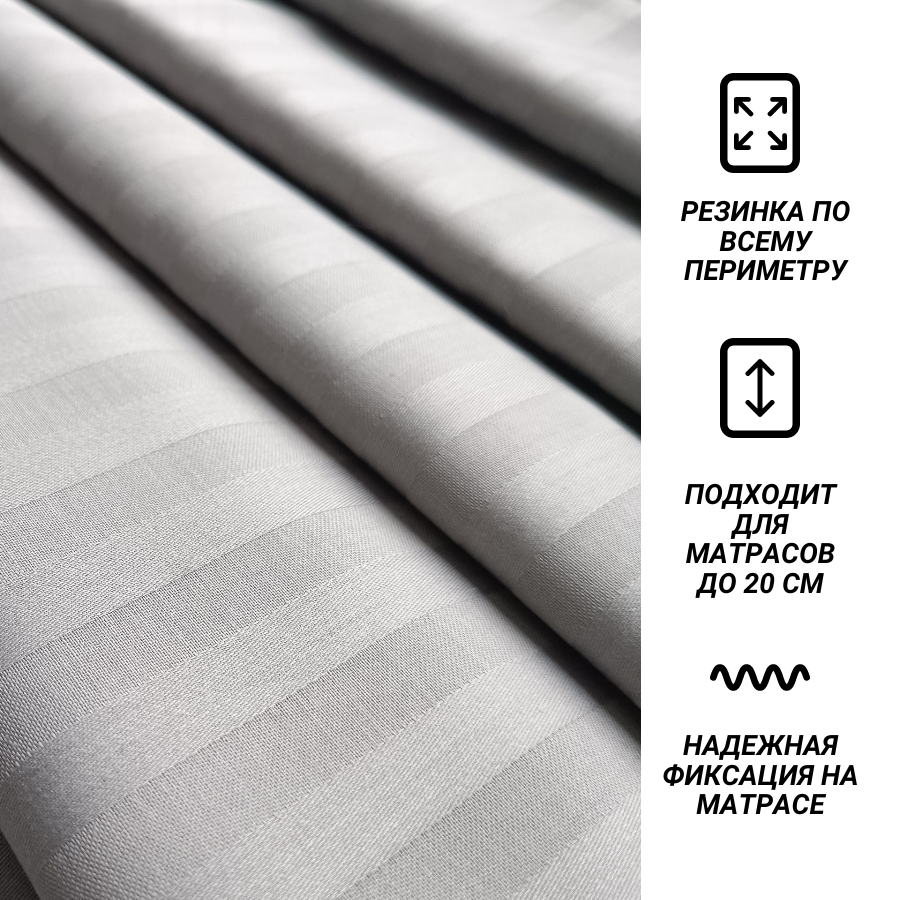 Простыня на резинке 160х200х20 страйп сатин серый СПАЛЕНКА78 хлопок 100% информация: