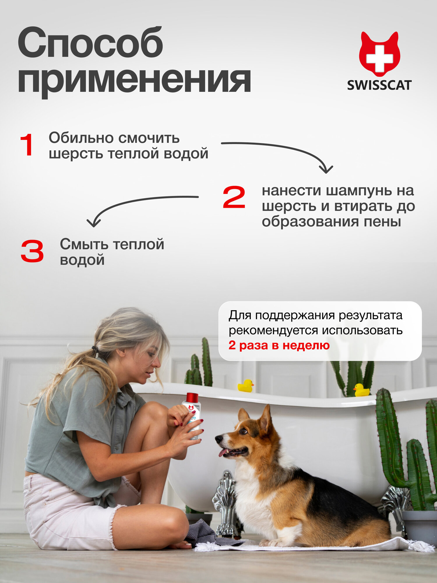 Шампунь для собак и кошек SWISSCAT гипоаллергенный с хлоргексидином, антибактериальный, против запаха, 180 мл 240 ₽