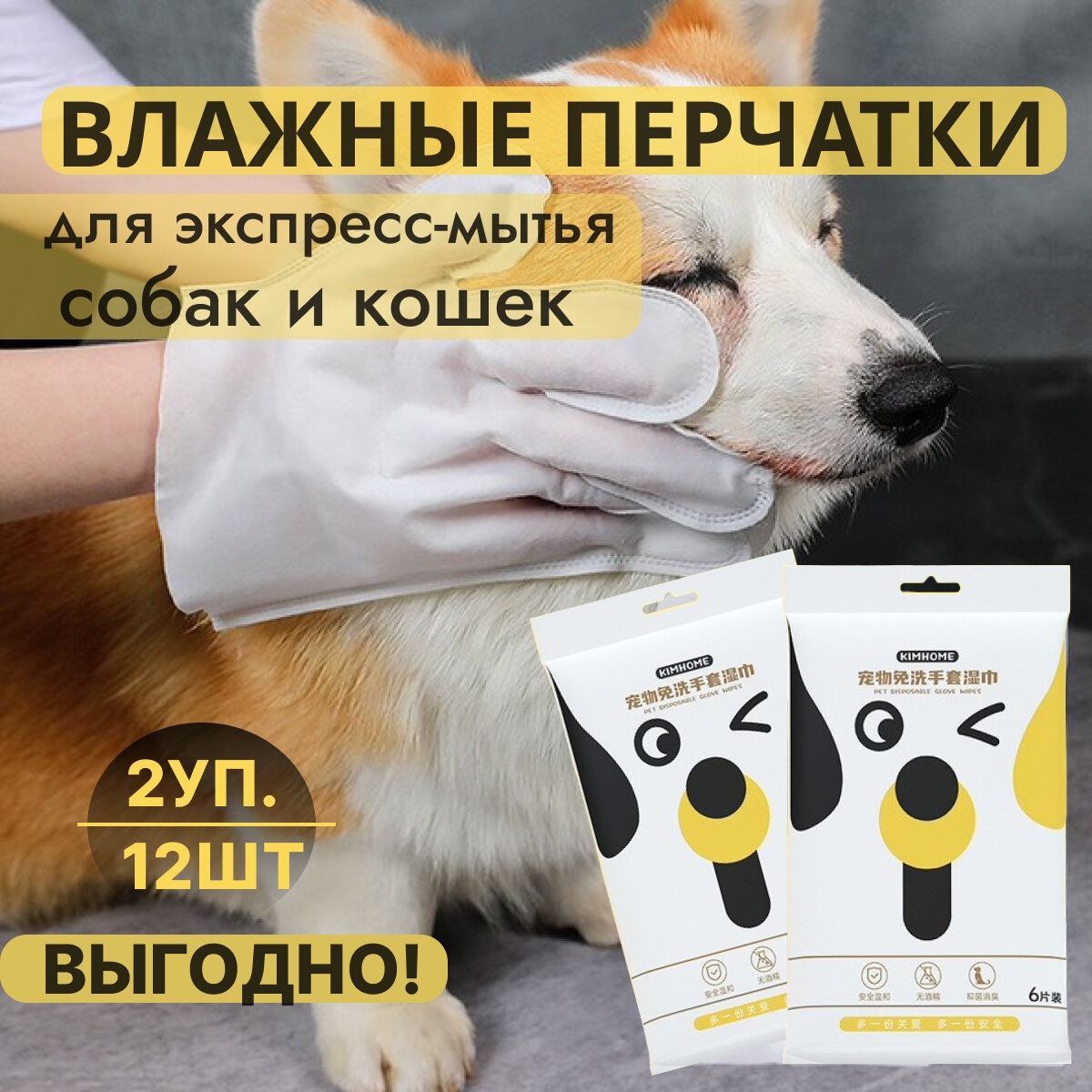 Влажные салфетки перчатки для собак и кошек 12шт информация: