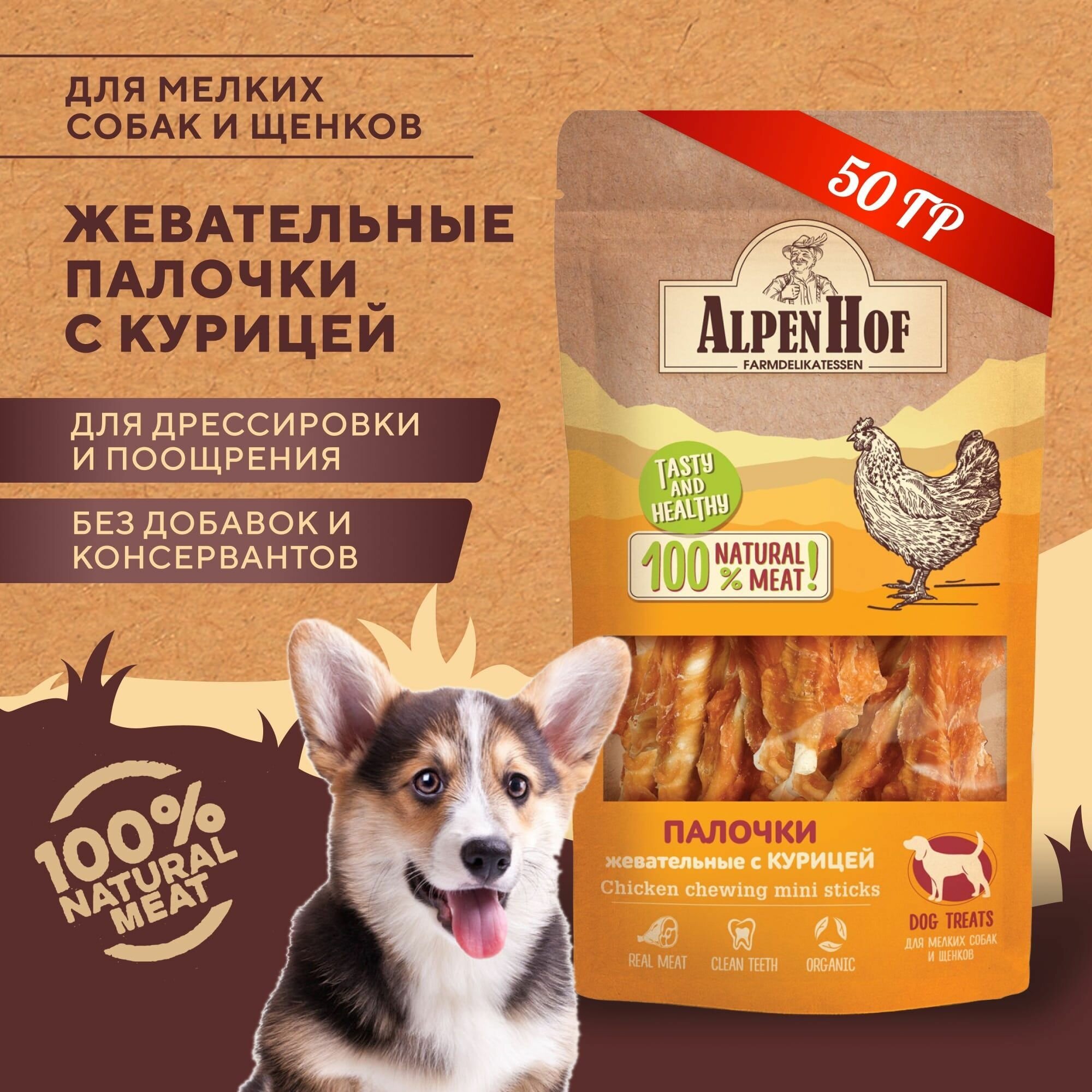 10 цен на AlpenHof лакомство для собак Жевательные палочки с курицей для мелких собак и щенков АльпенХоф, 50 г.