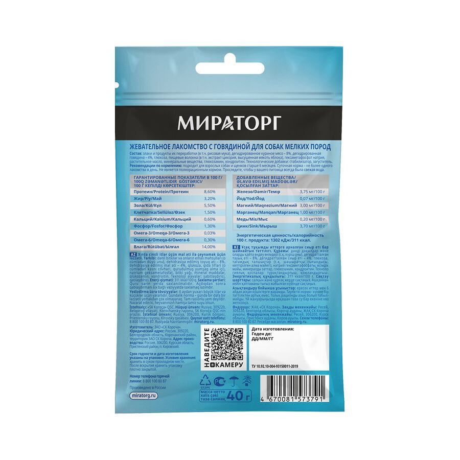 Мираторг Дентал лакомство для собак мелких пород с говядиной 40 г информация: