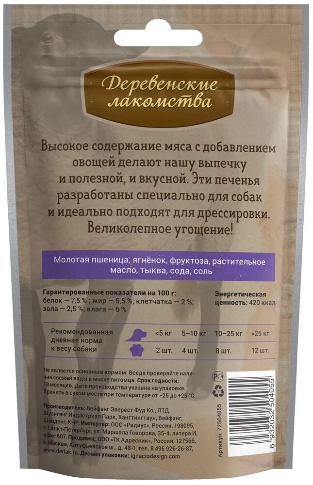 Деревенские лакомства Печенье с ягненком и тыквой д/собак 100г информация:
