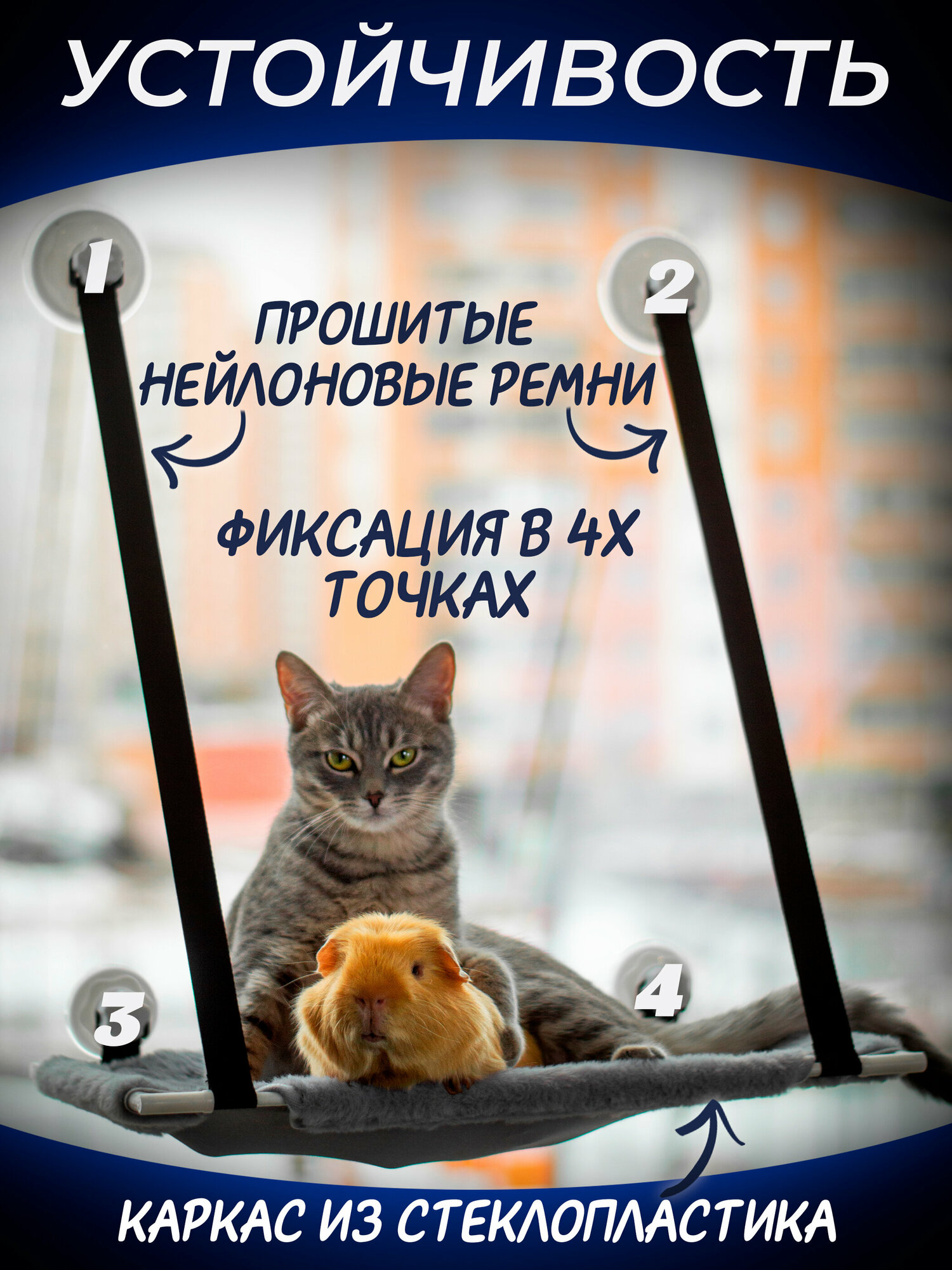 Гамак лежанка для кошек и котов на окно на присосках полка CatNap информация: