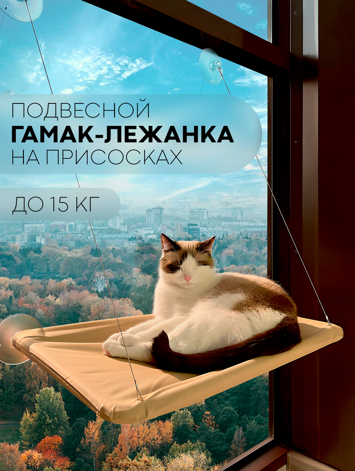 Навесной гамак полка для котов на окно, бежевый 1 390 ₽